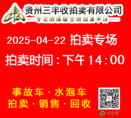 貴州三豐收拍賣有限公司網(wǎng)絡(luò)拍賣于2025年04月29日下午14點(diǎn)00準(zhǔn)時(shí)開(kāi)拍 請(qǐng)需要拍賣車輛的會(huì)員 通過(guò)二維碼繳納拍賣保證金或者致電我司繳納保證金 0851-86711666 18275321810 13378515056 18268322089 人工審核